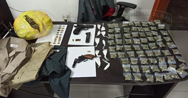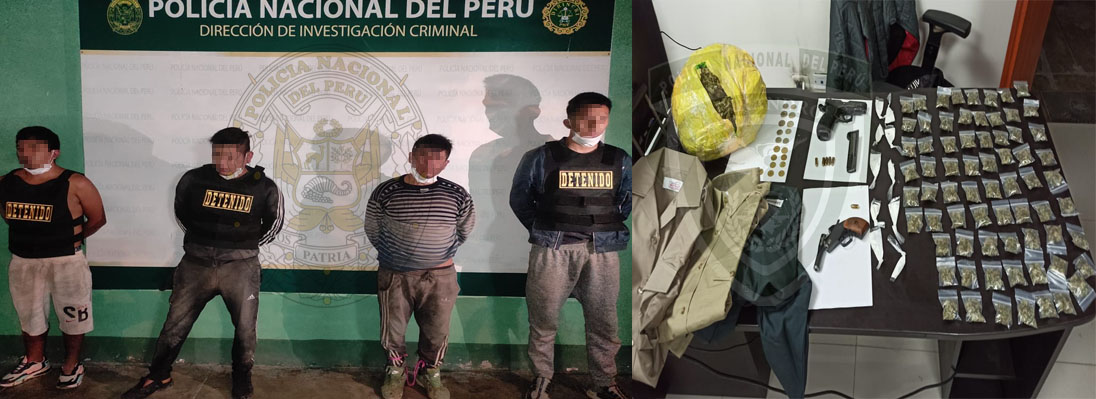 Lima – Huaral, centro poblado de Palpa, barrio Caqui, el 04 de mayo del 2021, a las 23:00 horas, el DEPINCRI Huaral, logra intervenir a 4 integrantes de una organización delictiva, al realizar el registro en el inmueble donde fueron encontrada estas personas, se recuperó un vehículo menor (mototaxi) hurtado horas antes, asi mismo se comiso 1 paquete conteniendo marihuana con un peso de 1 kg, 69 bolsitas de marihuana, 10 bolsitas de cocaína y se incautó 2 armas de fuego (1 pistola y 1 revolver).